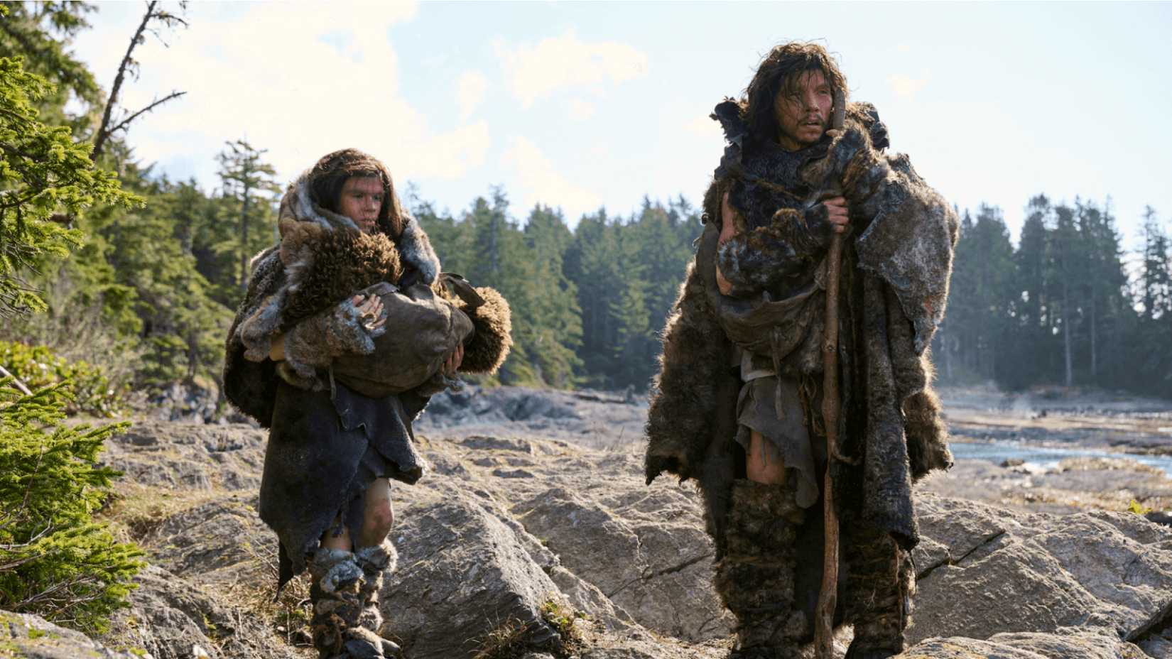 Within the Blink of an Eye unfolds non-linearly throughout three huge chapters of human evolutionary historical past, separated by millennia however tethered by the identical important story. It begins in 45,000 BC with a flint-making, hunter-gatherer Neanderthal household of 4: Thorn (Jorge Vargas), his pregnant spouse Hera (Tanaya Beatty), daughter Lark (Skywalker Hughes), and new child Ebb. Then it pivots from this primordial wilderness to the current day, 2025, with fairly comedic title playing cards.